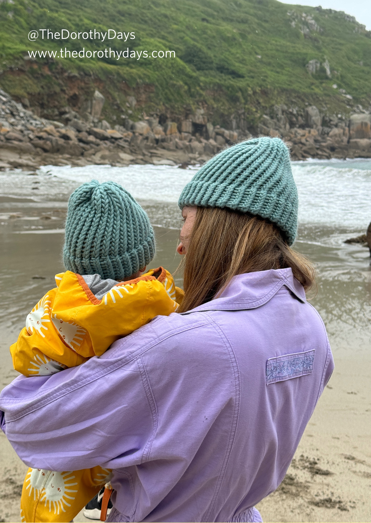 Adult Knitted Beanie Hat - Colourplay Collection - Purple and Grey